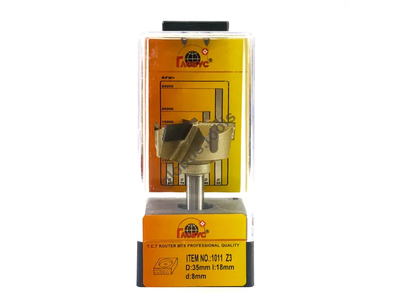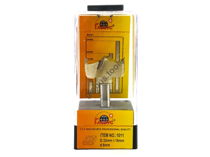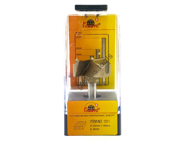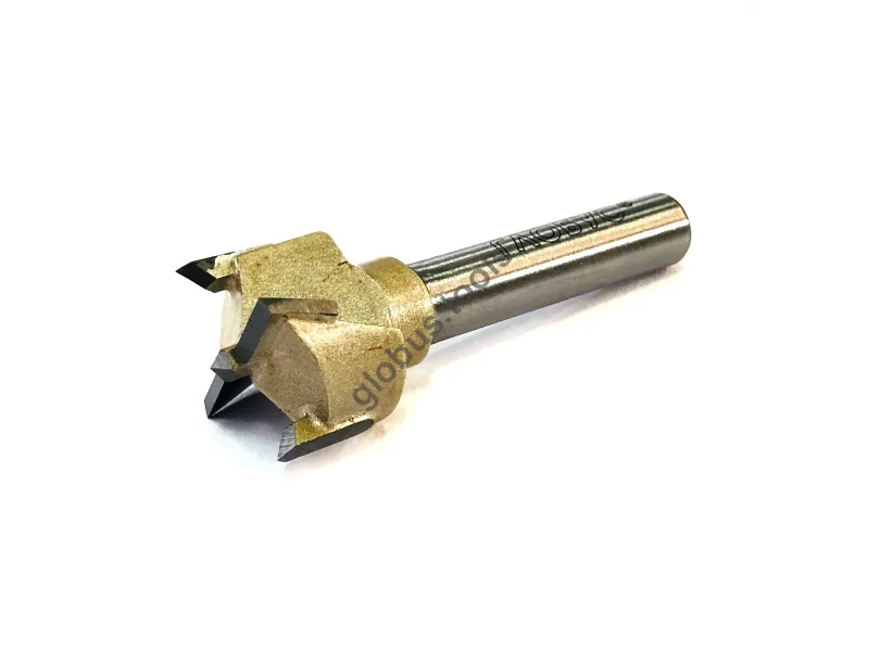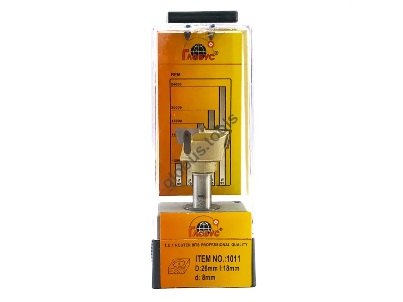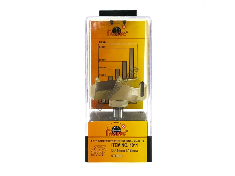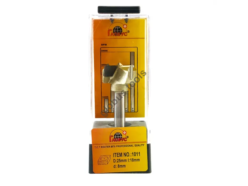 Фреза Глобус серії 1011 з обм. також відома як свердло Форстнера. Вона широко застосовується в деревообробці вже понад 120 років. Назва цього інструменту пов'язана з його творцем Бенджаміном Форстнером. Сучасні свердла Форстнера значно відрізняються від початкових моделей, проте основний принцип роботи залишається незмінним. Оснащені зовнішнім обідком, який фрезерує деревну заготівлю, а внутрішні ножі швидко видаляють стружку. Ці фрези Форстнера успішно справляються зі складними завданнями, такими як створення отворів, які повинні бути приховані в торцевій або крайній частині дерев'яної заготовки. Робоча частина фрези має діаметр (D): D35 обіг має ріжучий обідок, який ефективно зрізує деревні волокна, забезпечуючи чистий різ. Леза інструменту виконані з міцного та гострого твердосплавного матеріалу, що значно збільшує його термін служби порівняно зі сталевими аналогами. Ці фрези Форстнера підходять для створення отворів під петлі в меблевих заготовках, а також для інших робіт, що вимагають високої якості обробки без нерівностей та сколів. У модельній лінійці Глобус існує також фреза Форстнера без обмежувача 1011 та фреза 1011 Z3 з трьома зубцями.