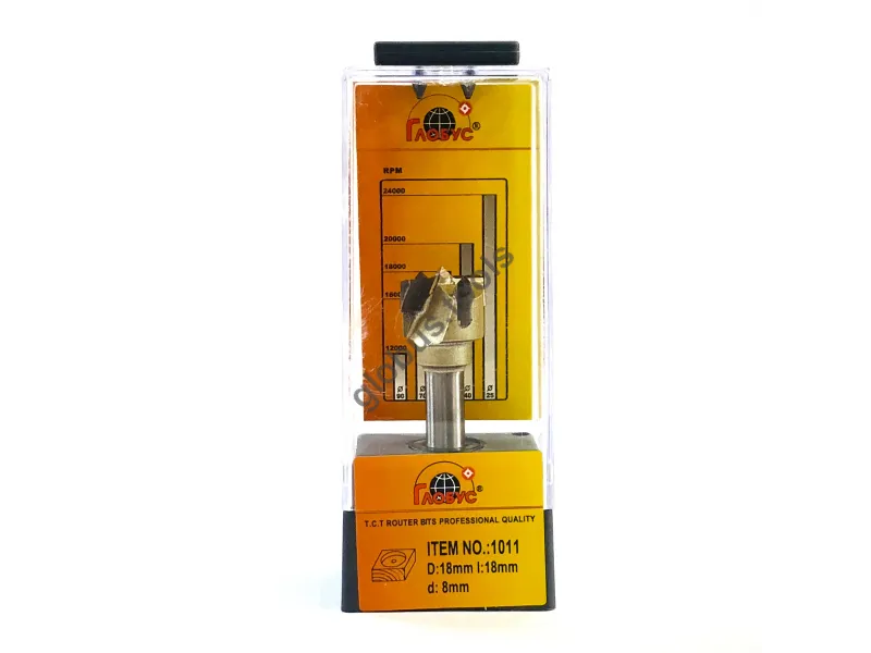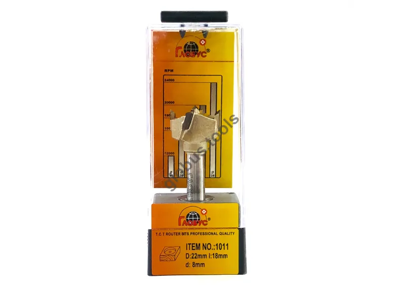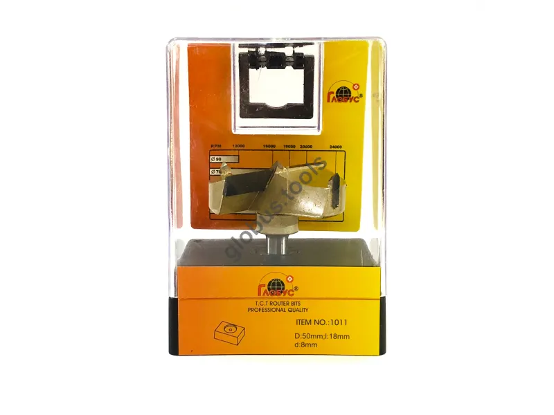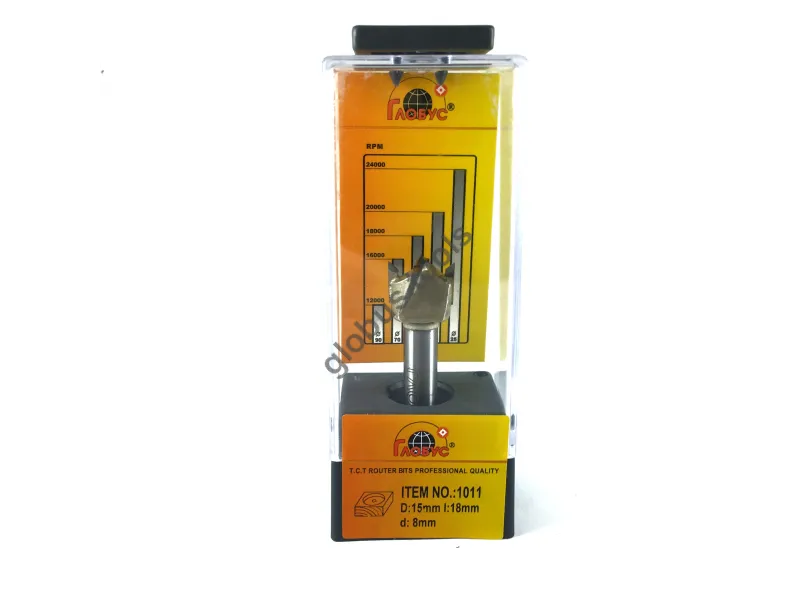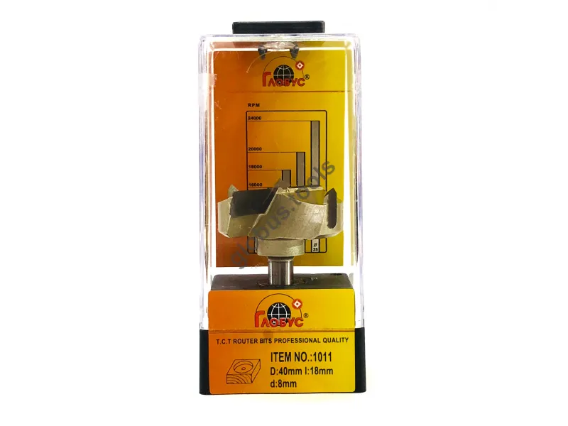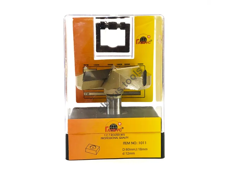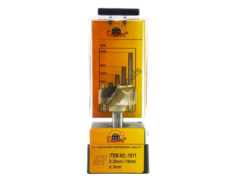 Фреза Глобус серії 1011 з обм. також відома як свердло Форстнера. Вона широко застосовується в деревообробці вже понад 120 років. Назва цього інструменту пов'язана з його творцем Бенджаміном Форстнером. Сучасні свердла Форстнера значно відрізняються від початкових моделей, проте основний принцип роботи залишається незмінним. Оснащені зовнішнім обідком, який фрезерує деревну заготівлю, а внутрішні ножі швидко видаляють стружку. Ці фрези Форстнера успішно справляються зі складними завданнями, такими як створення отворів, які повинні бути приховані в торцевій або крайній частині дерев'яної заготовки. Робоча частина фрези має діаметр (D): D35 обіг має ріжучий обідок, який ефективно зрізує деревні волокна, забезпечуючи чистий різ. Леза інструменту виконані з міцного та гострого твердосплавного матеріалу, що значно збільшує його термін служби порівняно зі сталевими аналогами. Ці фрези Форстнера підходять для створення отворів під петлі в меблевих заготовках, а також для інших робіт, що вимагають високої якості обробки без нерівностей та сколів. У модельній лінійці Глобус існує також фреза Форстнера без обмежувача 1011 та фреза 1011 Z3 з трьома зубцями.