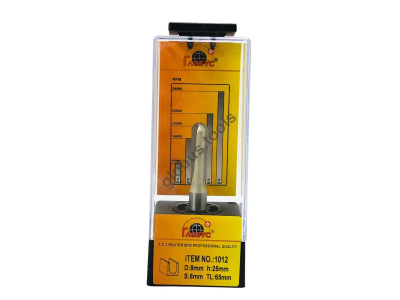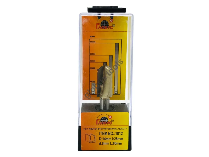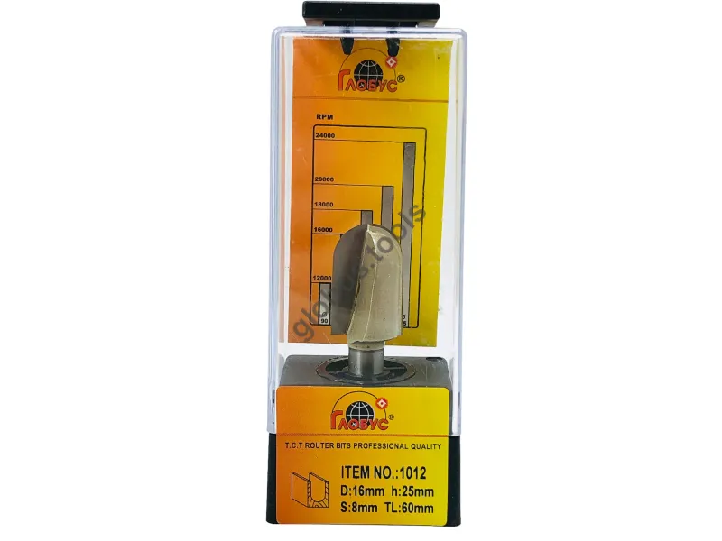Фреза серії 1012 від фірми Глобус. Має широкий спектр застосування у деревообробці. Використовується для виготовлення гальтельних виїмок по площинах і кромках заготовок. Підходить для пазування, радіусного гравіювання та виконання декоративних малюнків за шаблонами. Фрезу Глобус 1012 варто придбати для вибірки чверті. Інструмент також виконує функції обкаточної фрези для кромки (для виробів діаметром понад 16 мм із встановленням стопорних кілець та підшипника). Встановлюється на ручні фрезерні машини.