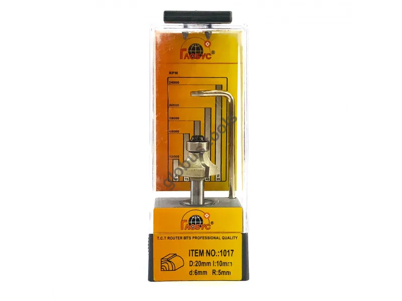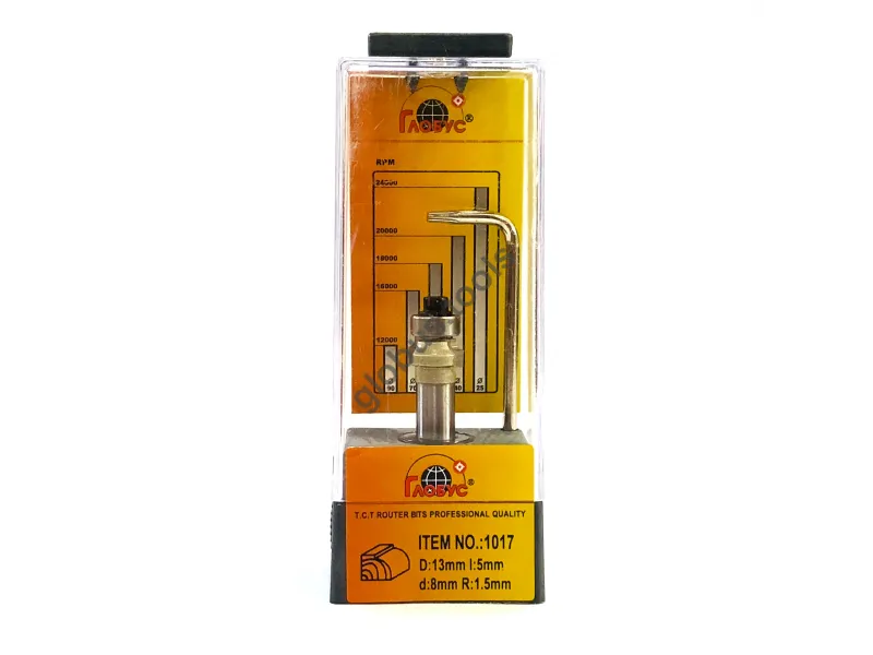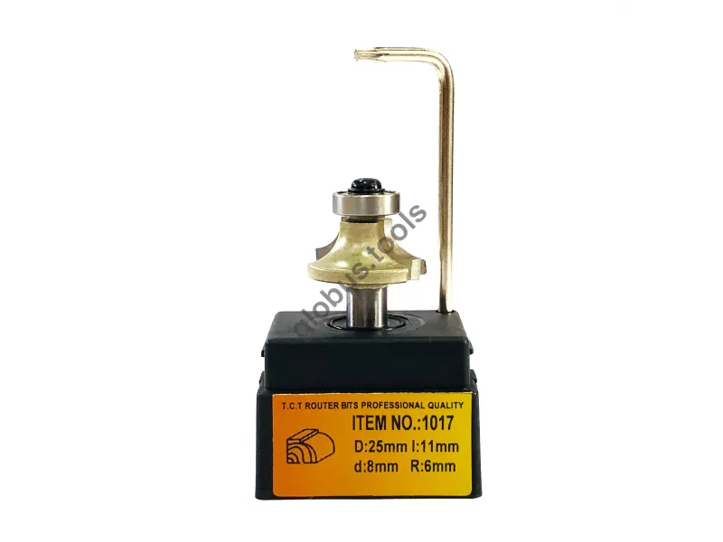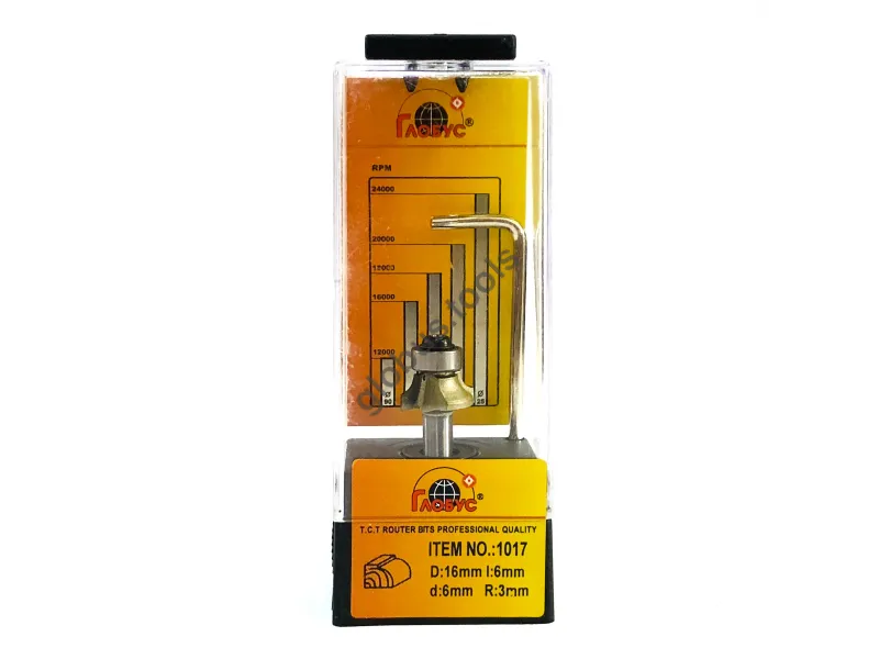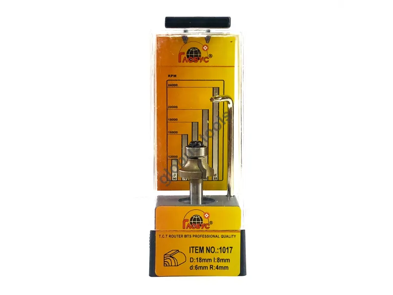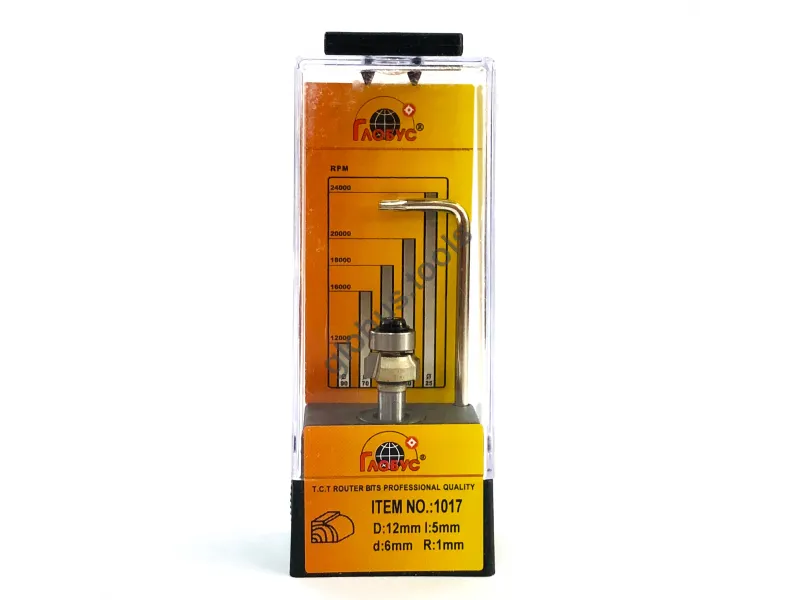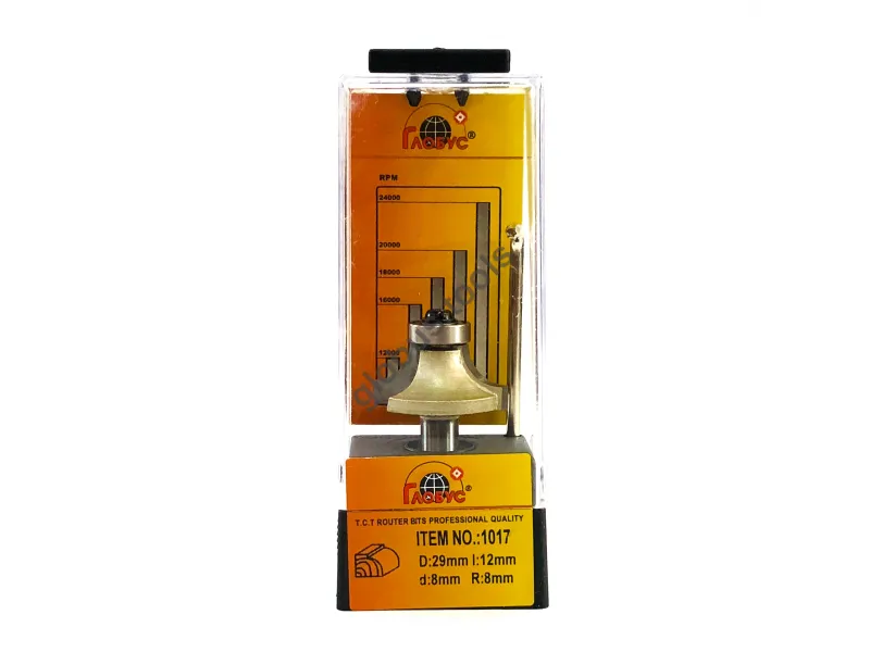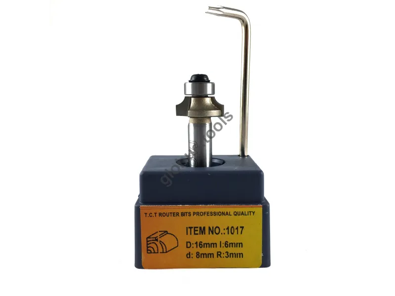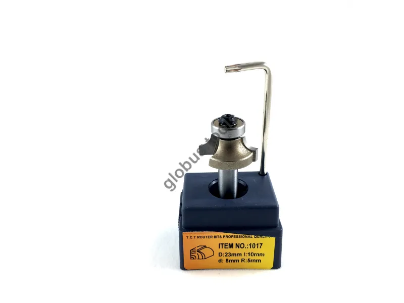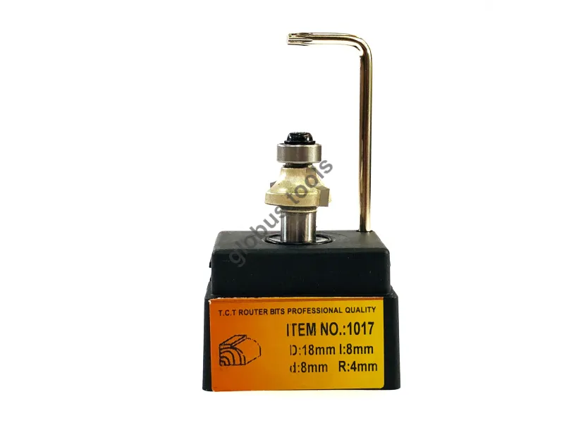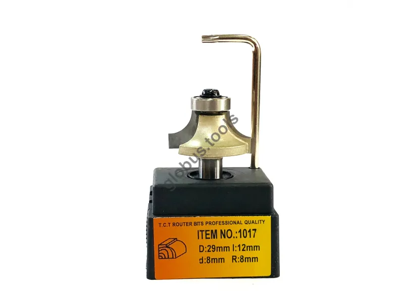 Інструмент серії 1017 бренду Глобус використовується для обробки кромок на прямокутних чи криволінійних дерев'яних деталях. Фреза дозволяє максимально точно заокруглювати кромки і кути столярних виробів чи меблевих заотовок. Фреза Глобус 1017 дозволяє створювати якісні та гарні меблі. Робоча часина має радіуси 1, 1.5, 2, 3, 4, 5, 6, 8, 10, 12, 14, 18, 20, 25 та 30 мм. Хвостовик фрези має діаметр 6, 8 і 12 мм. Нижній підшипник дозволяє м'яко та плавно виконувати тонкі роботи по дереву.Твердосплавні напайки дозволяють фрезерувати деревину різної твердості.