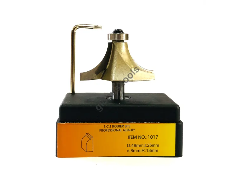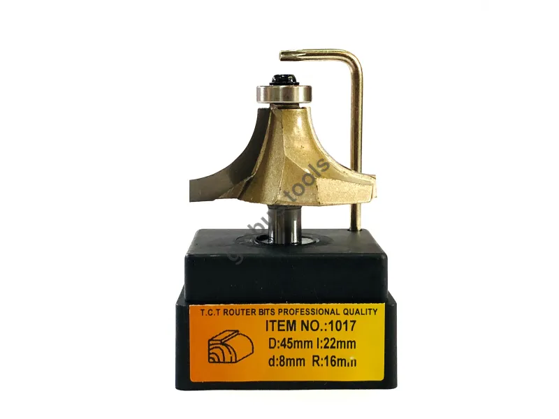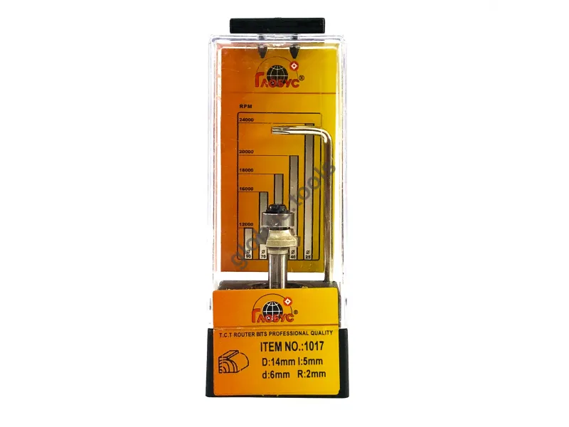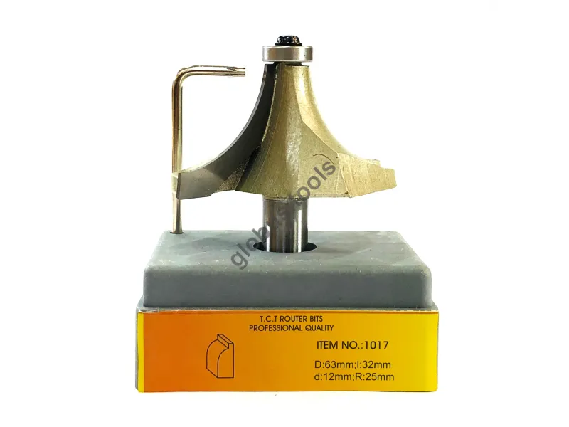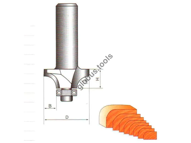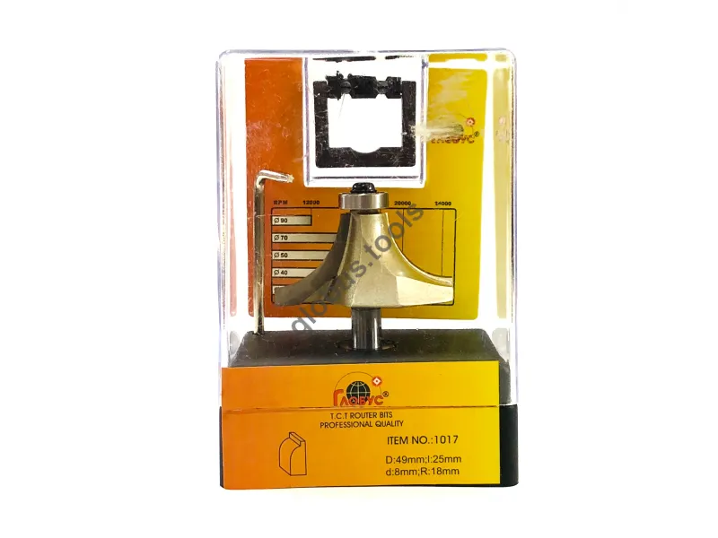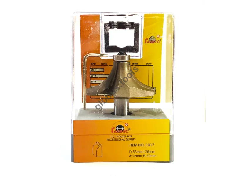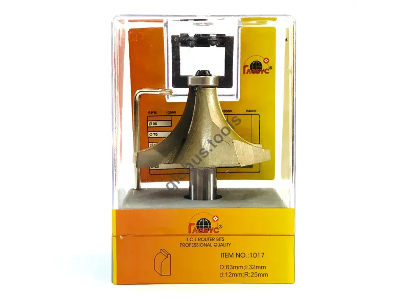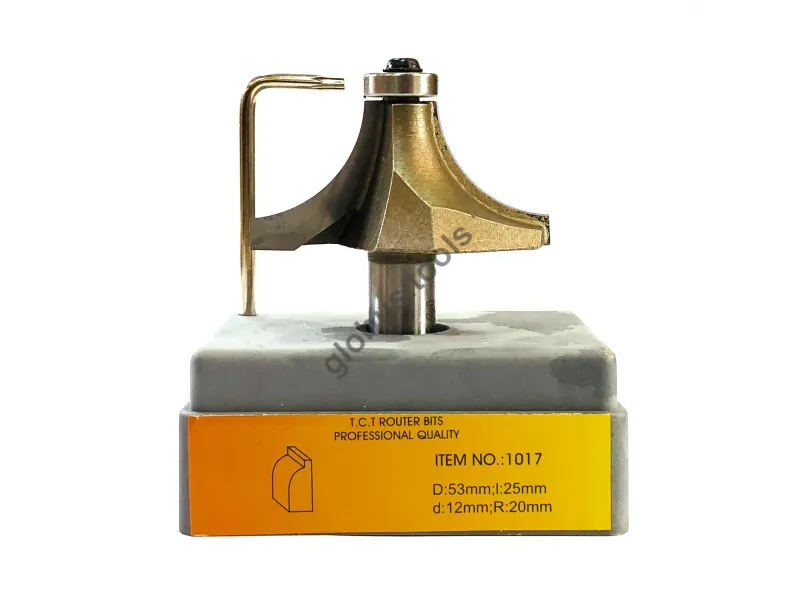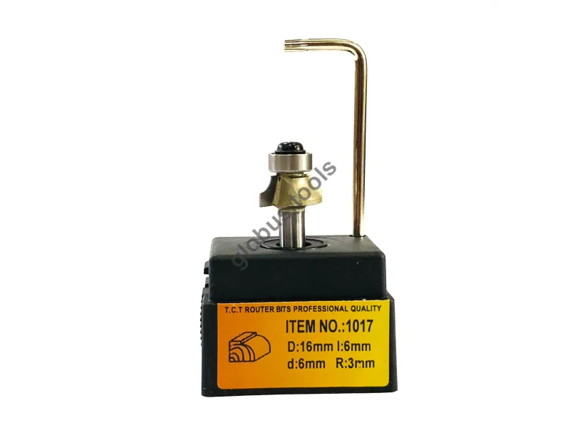 Інструмент серії 1017 бренду Глобус використовується для обробки кромок на прямокутних чи криволінійних дерев'яних деталях. Фреза дозволяє максимально точно заокруглювати кромки і кути столярних виробів чи меблевих заотовок. Фреза Глобус 1017 дозволяє створювати якісні та гарні меблі. Робоча часина має радіуси 1, 1.5, 2, 3, 4, 5, 6, 8, 10, 12, 14, 18, 20, 25 та 30 мм. Хвостовик фрези має діаметр 6, 8 і 12 мм. Нижній підшипник дозволяє м'яко та плавно виконувати тонкі роботи по дереву.Твердосплавні напайки дозволяють фрезерувати деревину різної твердості.